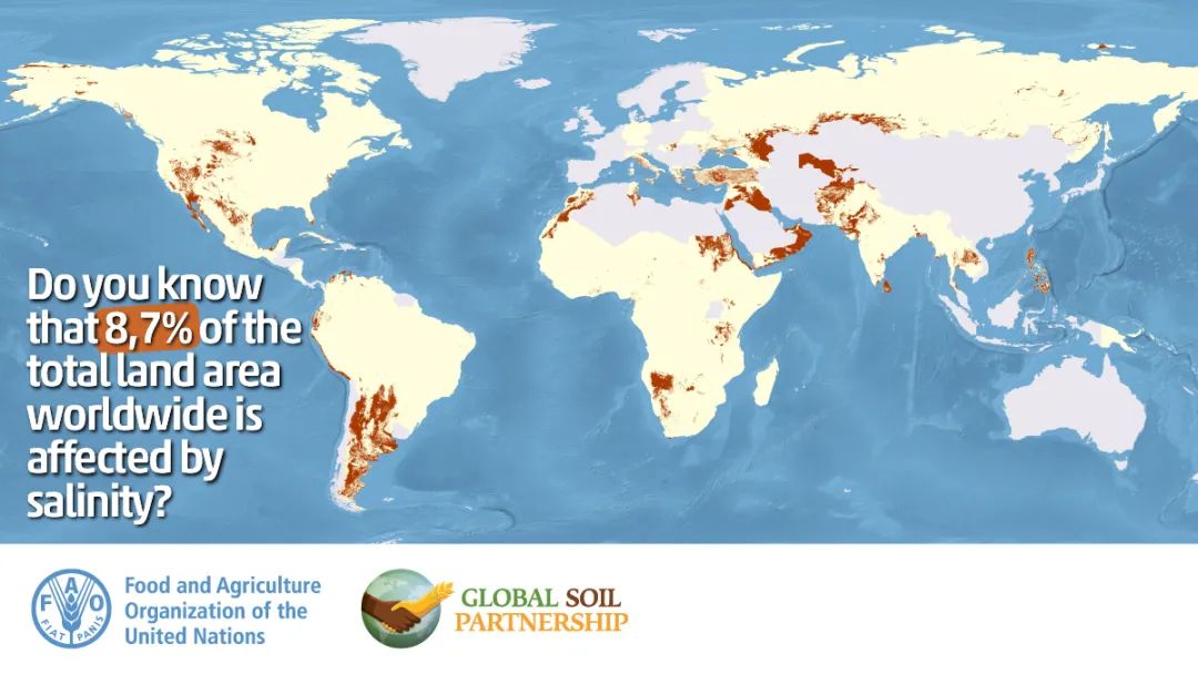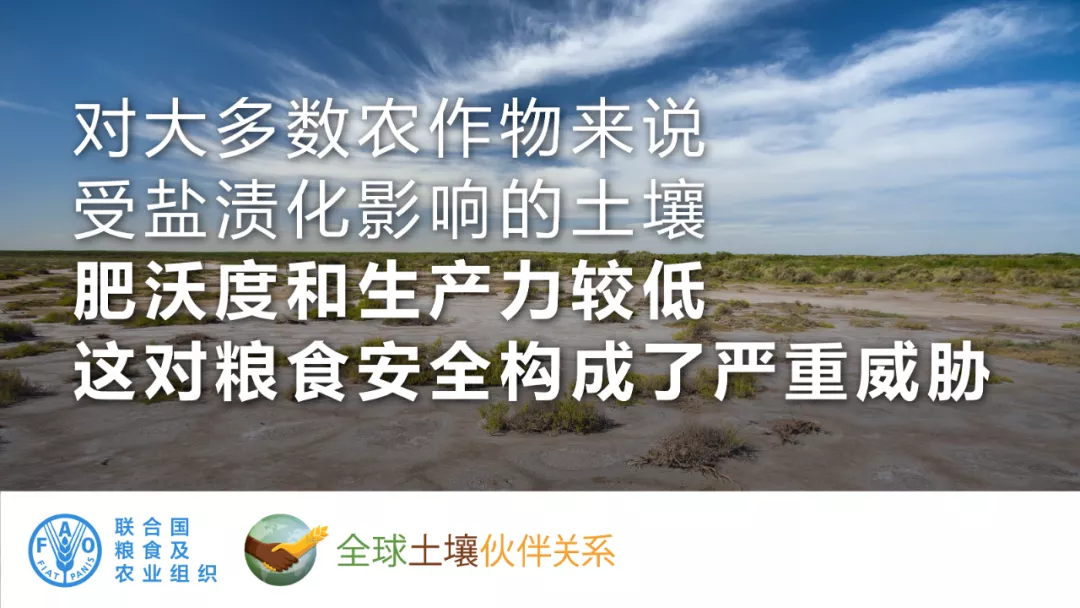 聯(lián)合國糧農(nóng)組織舉行“世界土壤日”紀念活動。©糧農(nóng)組織-農(nóng)作方法不可持續(xù),過度開發(fā)自然資源,人口不斷增長,這一切讓土壤承受的壓力越來越大,并造成土壤在全球范圍內以驚人的速度退化。-糧農(nóng)組織10月發(fā)布的全球鹽堿土壤分布圖顯示,全球超過8.33億公頃的土壤已經(jīng)受到鹽堿化的影響。 -根據(jù)測算,超過10%的農(nóng)田出現(xiàn)鹽堿化,對全球糧食安全構成重大威脅。-中亞、中東、南美、北非和太平洋區(qū)域是重災區(qū)。管理鹽堿化土壤需要綜合施策,采用可持續(xù)的土壤、灌溉和排水管理方式,選擇耐鹽作物和植物,包括能夠在鹽堿環(huán)境中良好生長的鹽生植物。