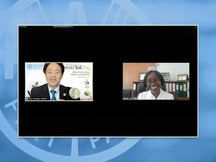 糧農(nóng)組織總干事屈冬玉為剛果共和國的土壤科學家Lydie-Stella Koutika頒獎。©糧農(nóng)組織點擊文末鏈接了解糧農(nóng)組織在土壤方面的工作, 其中全球土壤伙伴關系匯聚了土地使用者和決策者等一系列利益相關方,通過協(xié)作共同發(fā)力,改善土壤治理和促進土壤的可持續(xù)管理。伙伴關系的主要工作包括:定期編制《世界土壤資源狀況》報告;在發(fā)展中國家培養(yǎng)數(shù)字土壤制圖能力,形成各個層級的土壤信息和數(shù)據(jù);建立國家土壤信息系統(tǒng);開發(fā)各種工具加強土壤健康和防止退化,并在實地推廣良好做法;創(chuàng)建和協(xié)調可持續(xù)土壤管理的技術網(wǎng)絡,進行宣傳倡導。